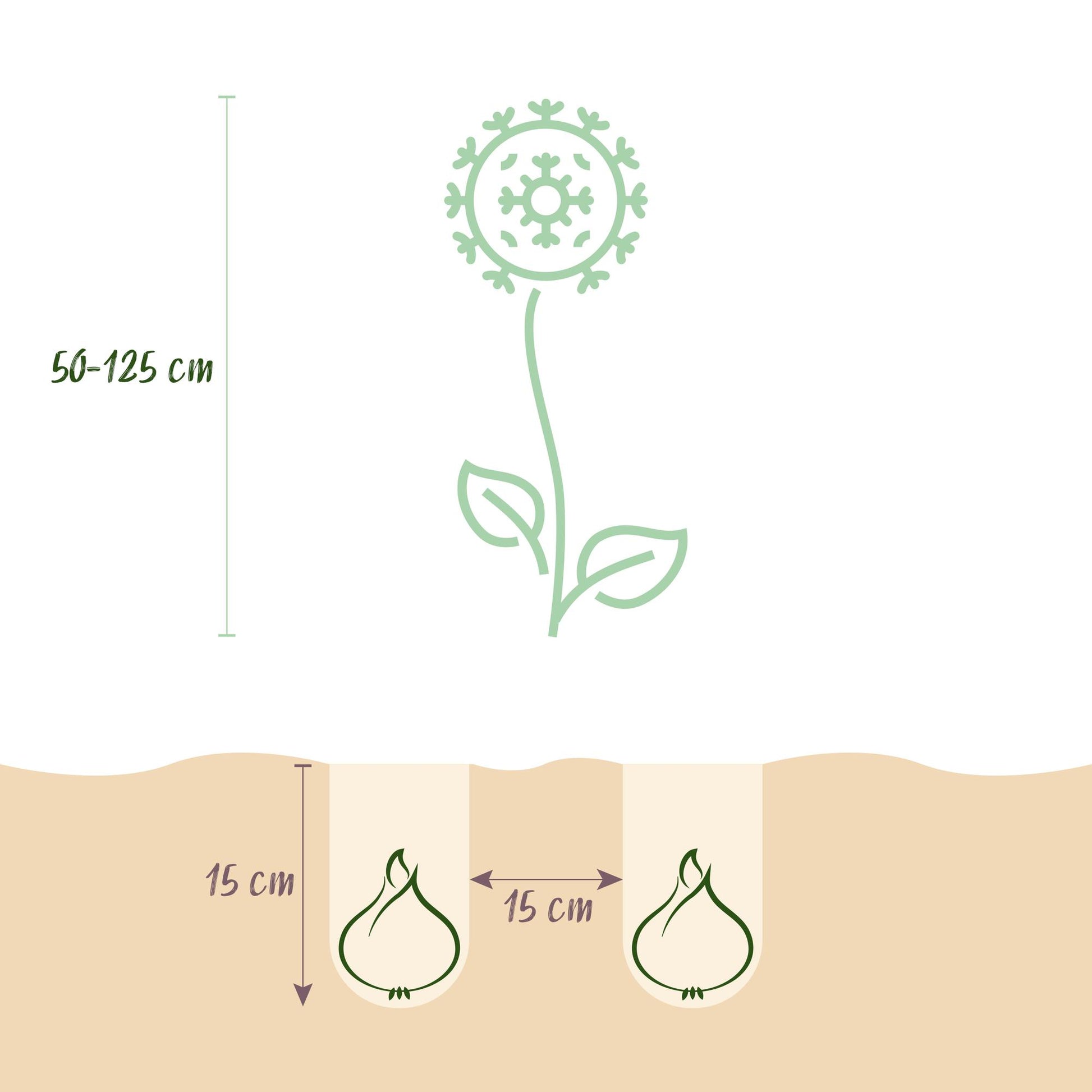 Plant de bollen in het najaar (september-november) op een zonnige plek met goed doorlatende grond. Prachtig in borders, perfect voor potten, en ook fantastisch als snijbloem. De bolvormige bloemen trekken bijen en vlinders aan. Combineer ze met siergrassen of lavendel voor een natuurlijk effect.